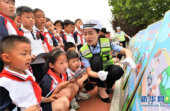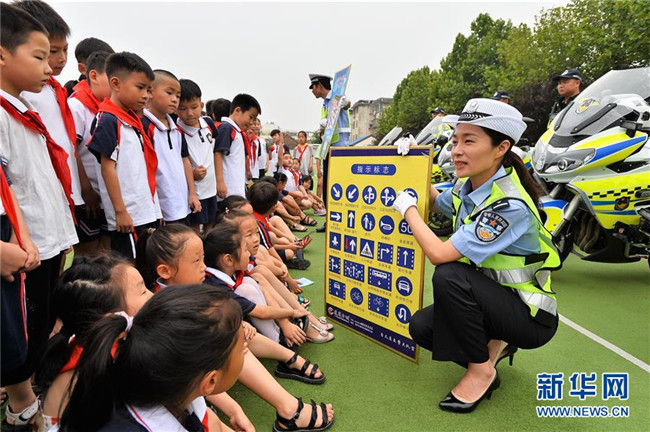 暑假將至,山東省棗莊市臺兒莊區(qū)實(shí)驗(yàn)小學(xué)組織開展“暑假安全伴我行”主題安全教育活動,向?qū)W生普及交通、消防安全知識,提高學(xué)生自我防護(hù)能力。 新華社發(fā)(高啟民 攝)