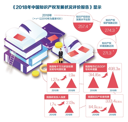 《2018年中國知識產(chǎn)權(quán)發(fā)展狀況評價報告》顯示,2018年我國知識產(chǎn)權(quán)綜合發(fā)展指數(shù)顯著提升,知識產(chǎn)權(quán)運用進步尤為顯著,社會公眾及創(chuàng)新主體的知識產(chǎn)權(quán)意識進一步提高。這得益于我國采取建機制、建平臺、促產(chǎn)業(yè)等多項措施,打通知識產(chǎn)權(quán)創(chuàng)造、運用、保護和管理全鏈條。