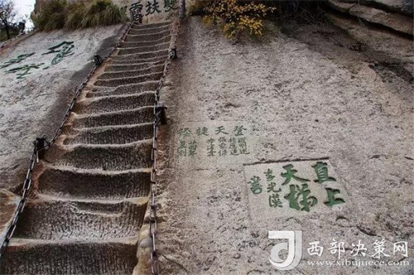 華山,被譽(yù)為奇險(xiǎn)天下第一山。它有著布滿奇險(xiǎn)的自古華山一條路,其中包括千尺幢、百尺峽、老君犁溝;它有著垂直90°的云梯;它有著一邊懸崖、一邊峭壁的長(zhǎng)空棧道;它有著寒索垂于凌空的鷂子翻身,來(lái)華山挑戰(zhàn)自我、挑戰(zhàn)奇險(xiǎn),感受大自然的神奇。