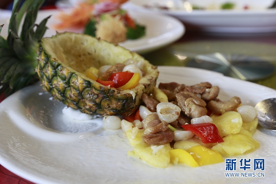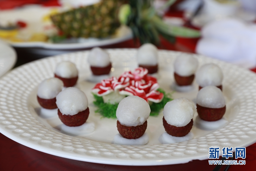 本次紅云宴對(duì)荔枝品種進(jìn)行精挑細(xì)選,與多種嶺南特色食材搭配,烹制出富有嶺南意蘊(yùn)和西關(guān)風(fēng)味的10道佳肴。新華網(wǎng) 林曉蕾攝