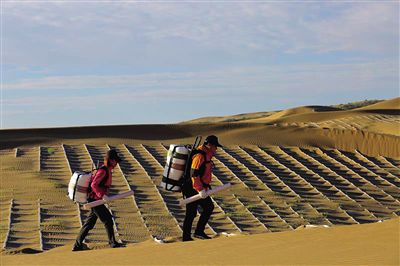 海歸博士虞毅帶領(lǐng)團隊對傳統(tǒng)沙障材料進行技術(shù)改良,研發(fā)了“生物基可降解聚乳酸纖維沙袋沙障治沙技術(shù)”,使傳統(tǒng)治沙“魔方”實現(xiàn)了兼具環(huán)保與耐用性的升級換代。