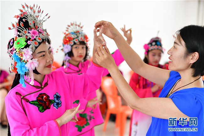 7月16日,小朋友們在灤州市自強里社區(qū)活動室學(xué)習評劇。新華社記者 牟宇 攝