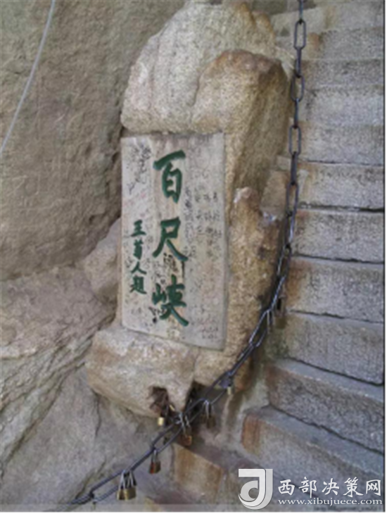 登華山有三道險關(guān),合稱華山三大險,當(dāng)?shù)亓鱾髦@樣一句民謠:“千尺幢, 百尺峽,老君犁溝往上爬。”