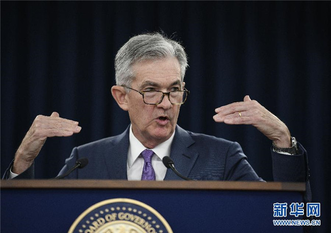 7月31日,在美國(guó)首都華盛頓,美國(guó)聯(lián)邦儲(chǔ)備委員會(huì)主席鮑威爾在新聞發(fā)布會(huì)上講話(huà)。 新華社記者 劉杰 攝
