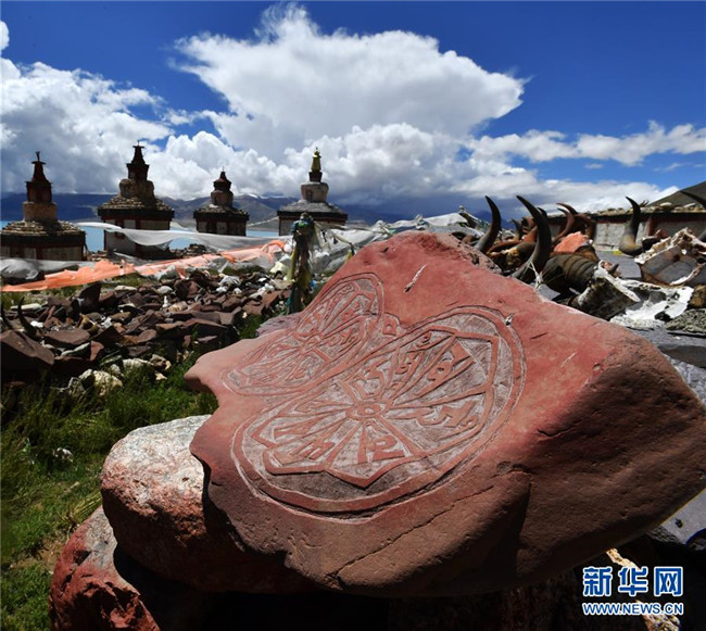 當(dāng)惹雍錯(cuò)旁的象雄佛塔及經(jīng)石(8月5日攝)。西藏那曲市尼瑪縣位于西藏西北部,位于羌塘國(guó)家級(jí)自然保護(hù)區(qū)內(nèi),是古老象雄文明的發(fā)祥地之一。這里空氣潔凈,野生動(dòng)物繁多,深受游客喜愛。新華社記者覺(jué)果攝