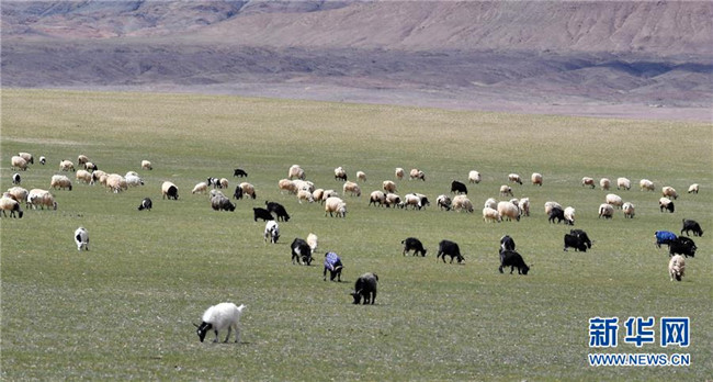 8月4日拍攝的尼瑪縣草原上的羊群。西藏那曲市尼瑪縣位于西藏西北部,位于羌塘國(guó)家級(jí)自然保護(hù)區(qū)內(nèi),是古老象雄文明的發(fā)祥地之一。這里空氣潔凈,野生動(dòng)物繁多,深受游客喜愛。新華社記者覺(jué)果攝
