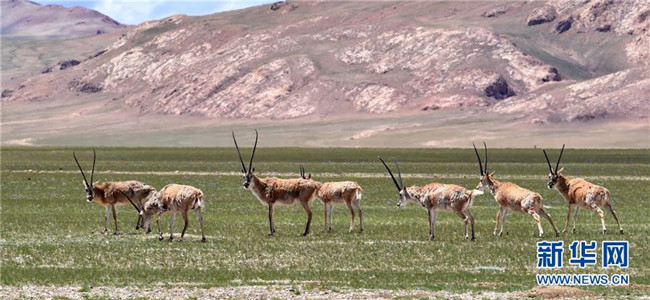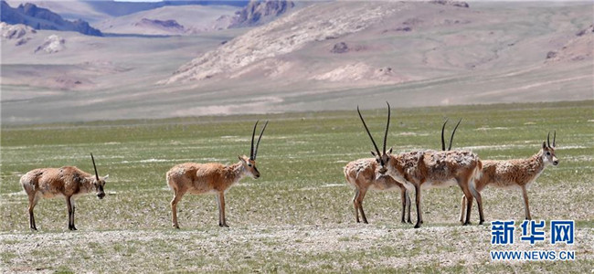 8月4日,藏羚羊在覓食。西藏那曲市尼瑪縣位于西藏西北部,位于羌塘國(guó)家級(jí)自然保護(hù)區(qū)內(nèi),是古老象雄文明的發(fā)祥地之一。這里空氣潔凈,野生動(dòng)物繁多,深受游客喜愛。新華社記者覺(jué)果攝