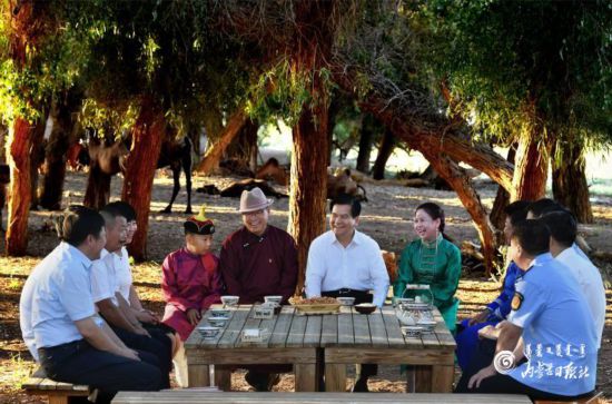 8月5日,自治區(qū)黨委書記、人大常委會(huì)主任李紀(jì)恒來到額濟(jì)納旗烏蘭格日勒嘎查,向當(dāng)?shù)芈糜螐臉I(yè)人員及文旅等部門負(fù)責(zé)人了解旅游業(yè)發(fā)展情況,傾聽他們的意見建議。內(nèi)蒙古日報(bào)社融媒體記者馬建荃攝