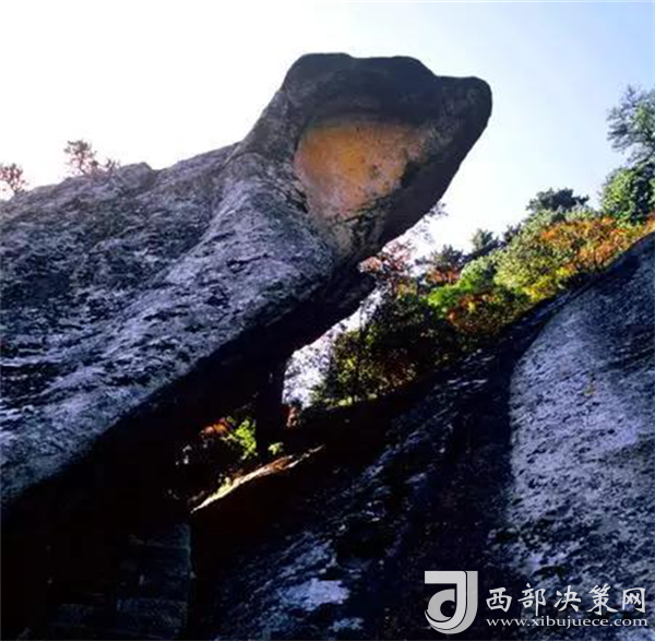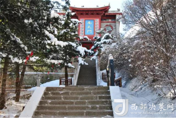 峰南側(cè)是千丈絕壁,直立如削,下臨一斷層深壑,同三公山、三鳳山隔絕。南峰由一峰二頂組成,東側(cè)一頂叫松檜峰,西側(cè)一頂叫落雁峰,也有說(shuō)南峰由三頂組成,把落雁峰之西的孝子峰也算在其內(nèi)。這樣一來(lái),落雁峰最高居中,松檜峰居?xùn)|,孝子峰居西,整體形象一把圈椅,三個(gè)峰頂恰似一尊面北而坐的巨人。