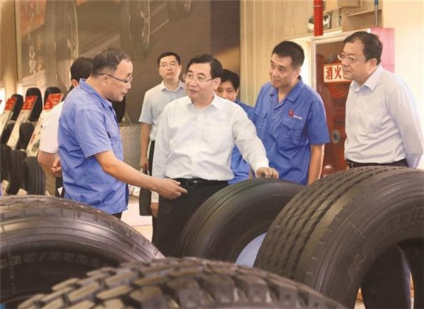 胡和平來(lái)到陜西建工金牛集團(tuán),聽取生產(chǎn)經(jīng)營(yíng)情況介紹,得知企業(yè)近年來(lái)通過(guò)技術(shù)改造升級(jí)和服務(wù)模式創(chuàng)新實(shí)現(xiàn)較大發(fā)展,他十分高興,要求聚焦鍋爐制造領(lǐng)域,鞏固產(chǎn)業(yè)優(yōu)勢(shì),擴(kuò)大產(chǎn)能規(guī)模,實(shí)現(xiàn)更大效益。在延長(zhǎng)石油西北橡膠公司,胡和平察看鋼絲壓延、裁剪接合、一次成型等工藝流程,詢問產(chǎn)品性能、技術(shù)特點(diǎn)、市場(chǎng)份額,勉勵(lì)公司加強(qiáng)核心技術(shù)攻關(guān),提升產(chǎn)品質(zhì)量,在市場(chǎng)競(jìng)爭(zhēng)中更好掌握主動(dòng)。