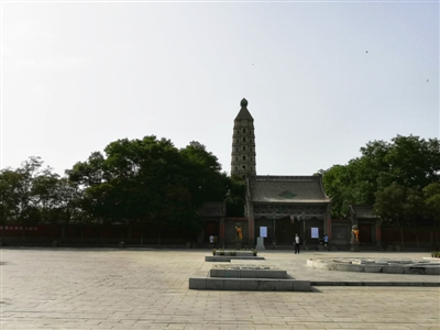 北塔是一座方形九層十一級樓閣式磚塔,海寶塔建筑風格獨特,方形的塔身,四面的券門,眾多的棱角,四角的尖頂,為中國古塔所罕見,被視為中國古代建筑的杰作。