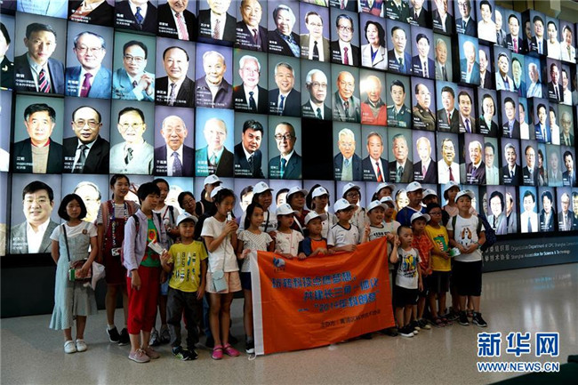8月21日,觀眾在上海科學(xué)會堂的院士墻前留影。