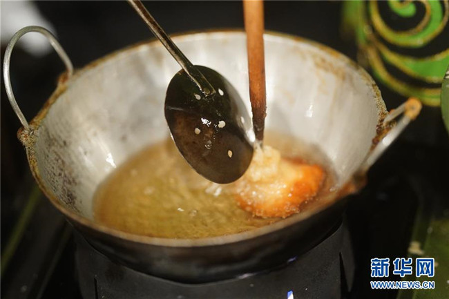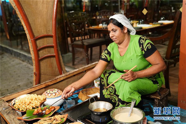 斯里蘭卡甜點品種十分豐富。傳統(tǒng)甜食油糕是在斯里蘭卡傳統(tǒng)節(jié)日以及家庭聚會上常見的甜點,它以米粉、糖漿和椰奶為原料,油炸后形成小山包狀。 新華社記者唐璐攝