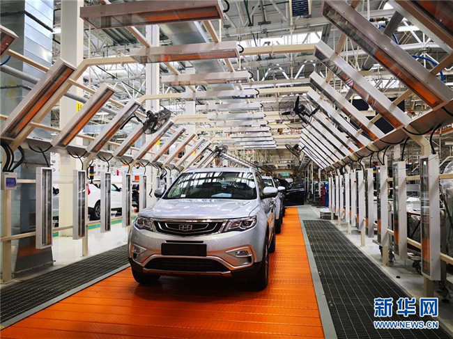 這是在白俄羅斯首都明斯克東北方向50公里處的白俄羅斯吉利全散件汽車制造廠總裝車間拍攝的準(zhǔn)備下線的汽車(2018年12月8日拍攝)。  新華社記者 張若玄 攝