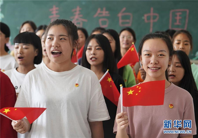 當(dāng)日,河北省邢臺(tái)技師學(xué)院開展“青春告白中國(guó)”活動(dòng),學(xué)生們通過(guò)唱歌、快閃、專業(yè)課程等形式,表達(dá)對(duì)祖國(guó)的熱愛和祝福。 新華社記者 邢廣利 攝