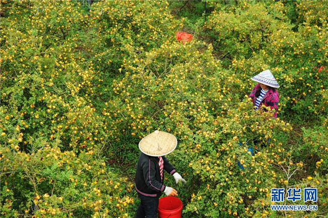 貴州省龍里縣谷腳鎮(zhèn)的農民在采摘刺梨鮮果(2018年8月22日攝)。 近年來,貴州省圍繞產業(yè)選擇、培訓農民、技術服務、資金籌措、組織方式、產銷對接、利益聯(lián)結、基層黨建等“八要素”,通過“減、融、服”創(chuàng)新推進農村產業(yè)結構調整,既帶動了農戶增收,也推動了特色產業(yè)做大做強。 新華社記者 楊文斌 攝