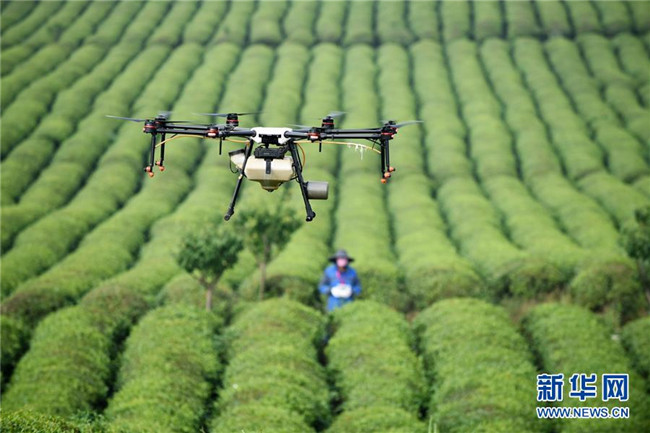 農技人員操作植保無人機在貴州省安順市西秀區(qū)明英茶生產基地作業(yè)(5月23日攝)。 近年來,貴州省圍繞產業(yè)選擇、培訓農民、技術服務、資金籌措、組織方式、產銷對接、利益聯(lián)結、基層黨建等“八要素”,通過“減、融、服”創(chuàng)新推進農村產業(yè)結構調整,既帶動了農戶增收,也推動了特色產業(yè)做大做強。 新華社記者 楊文斌 攝