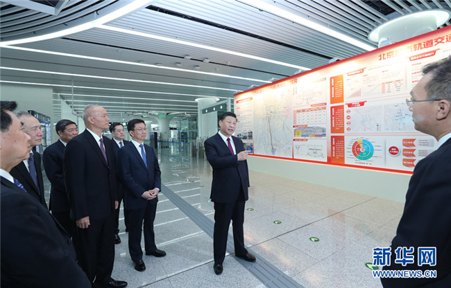 在草橋站進(jìn)站大廳,習(xí)近平結(jié)合展板聽取情況介紹。習(xí)近平強(qiáng)調(diào),城市軌道交通是現(xiàn)代大城市交通的發(fā)展方向。發(fā)展軌道交通是解決大城市病的有效途徑,也是建設(shè)綠色城市、智能城市的有效途徑。北京要繼續(xù)大力發(fā)展軌道交通,構(gòu)建綜合、綠色、安全、智能的立體化現(xiàn)代化城市交通系統(tǒng),始終保持國(guó)際最先進(jìn)水平,打造現(xiàn)代化國(guó)際大都市。