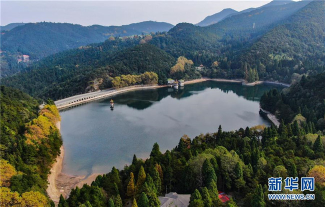 這是10月10日在廬山風景區(qū)內(nèi)拍攝的蘆林湖(無人機拍攝)。新華社記者 胡晨歡 攝