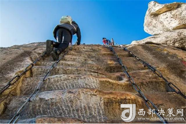 華山山勢極為陡峭,頂部諸峰外圍為斷層割切,成直立形懸崖,側(cè)面均為千仞峭壁,僅有一條極為狹窄的嶺脊(蒼龍嶺)與之相通,其險(xiǎn)峻特征在五岳中絕無僅有,這也是華山地貌形態(tài)的一大特點(diǎn)。(供稿:華旅集團(tuán)營銷中心)