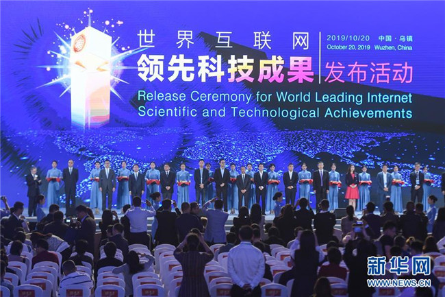 10月20日,15項世界互聯(lián)網(wǎng)領先科技成果在浙江烏鎮(zhèn)召開的第六屆世界互聯(lián)網(wǎng)大會上發(fā)布,這是出席發(fā)布活動的代表在臺上合影。 新華社記者 黃宗治 攝
