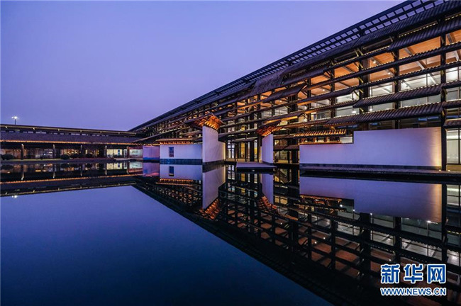 這是10月19日拍攝的烏鎮(zhèn)互聯(lián)網(wǎng)國際會展中心夜景。 新華社記者 徐昱 攝