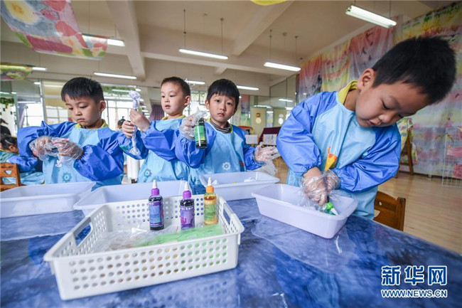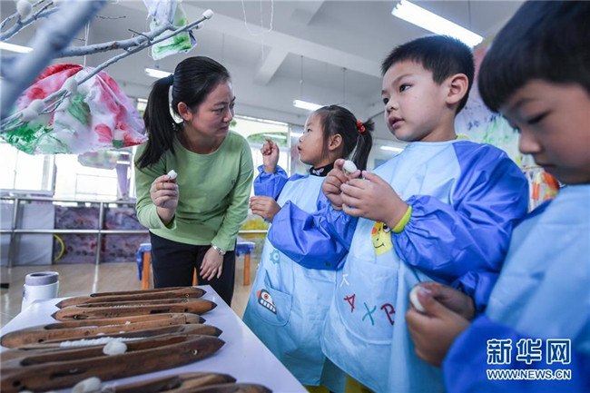 今年以來,浙江省長興縣夾浦鎮(zhèn)中心幼兒園依托當(dāng)?shù)貍鹘y(tǒng)布藝文化基礎(chǔ)開設(shè)“七彩課堂”,引進布藝、扎染等傳統(tǒng)工藝課程,讓孩子們感受民間工藝的魅力。 新華社記者 徐昱 攝