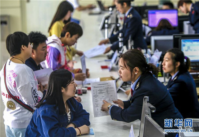 在河北省饒陽縣涉稅分中心,窗口工作人員為民營企業(yè)家講解簡便納稅流程(5月6日攝)。新華社記者 李曉果 攝