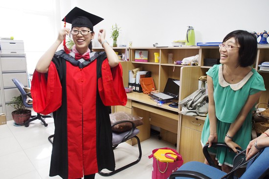 2013年6月,北京市海淀區(qū)中國科學(xué)院植物研究所,范明珠(左)經(jīng)過20年寒窗苦讀獲得博士學(xué)位。