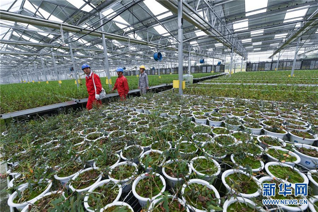 11月6日,在長興縣呂山鄉(xiāng)雁陶村的農光互補園區(qū)的光伏大棚內,工作人員在檢查光伏設備運行情況。