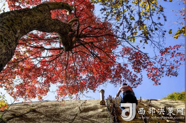 不知道從何時由何人做出的統(tǒng)計每年秋季都會排出秦嶺紅葉十大觀賞點。可惜總是沒有西岳華山,自然難以讓人信服。為此在這里給大家奉上一組華山紅葉,不要錯過哦。喜鵲已經(jīng)在擦耳崖之上期待遠方的你了。