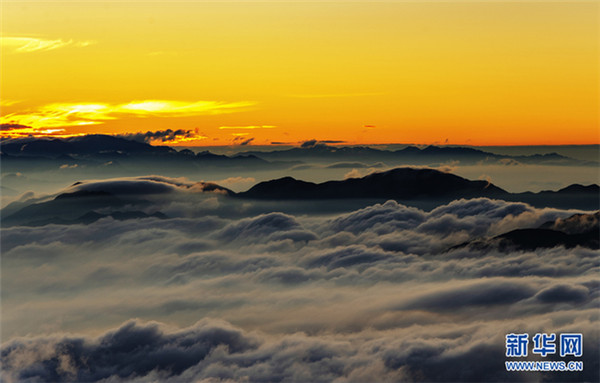 黃山風(fēng)景區(qū)日出云海景觀。新華網(wǎng)發(fā)(葉永青 攝)