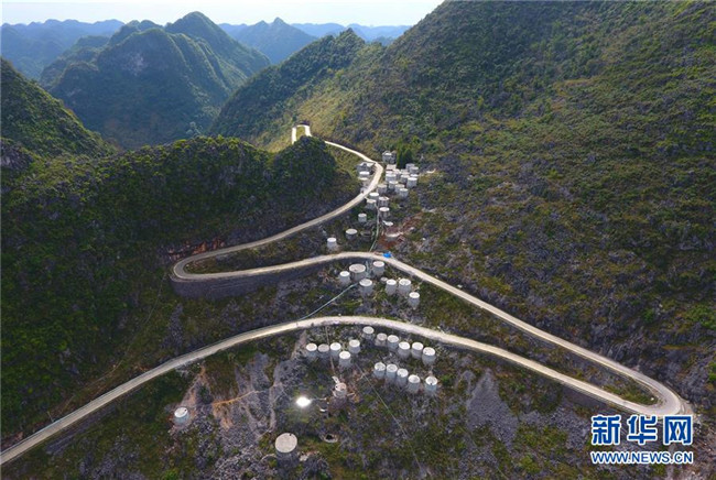 在廣西大化瑤族自治縣七百弄鄉(xiāng)古竹村,村民在懸崖邊修建的微型水柜(11月13日攝)。 新華社記者 黃孝邦 攝