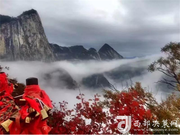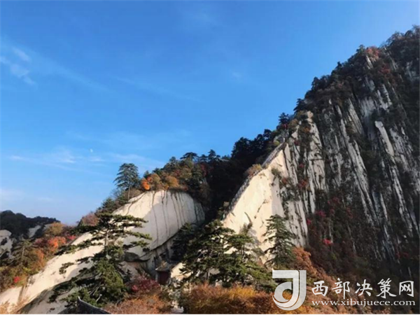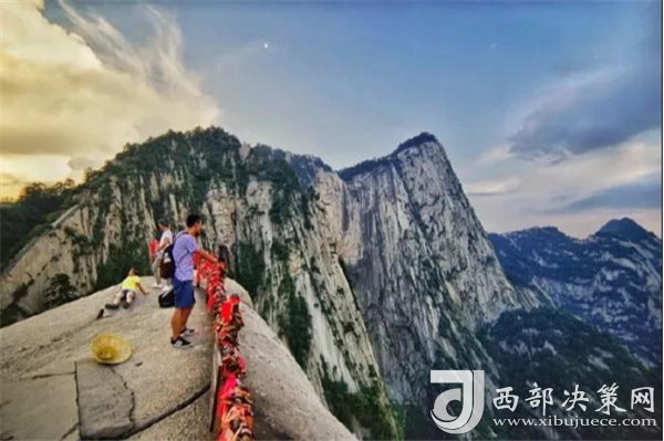 又因峰巔有巨石形狀好似蓮花瓣,古代文人多稱其為蓮花峰、芙蓉峰。西峰為一塊完整巨石,渾然天成。西北絕崖千丈,似刀削鋸截,其陡峭巍峨、陽剛挺拔之勢(shì)是華山山形之代表,因此古人常把華山叫蓮花山。西峰南崖有山脊與南峰相連,脊長(zhǎng)300余米,石色蒼黛,形態(tài)好像一條屈縮的巨龍,人稱為屈嶺,也稱小蒼龍嶺,是華山著名的險(xiǎn)道之一。