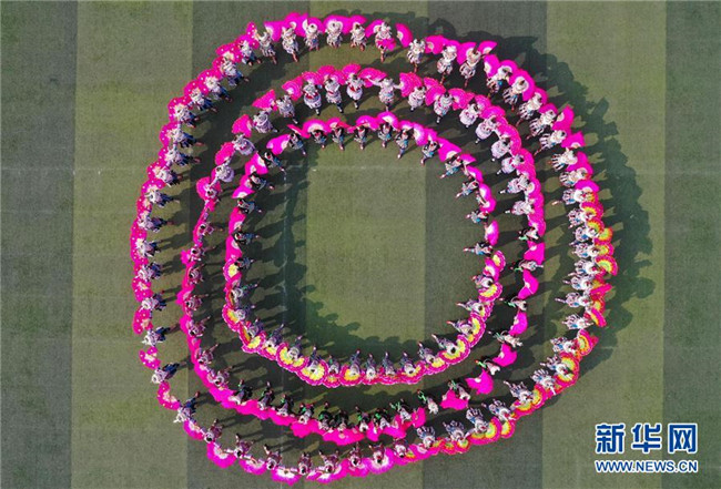 11月23日,當(dāng)?shù)厝罕娫谔J笙斗馬節(jié)開幕式上表演民族歌舞(無人機(jī)拍攝)。