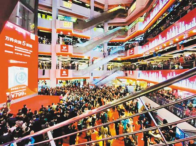 京東電器超級(jí)體驗(yàn)店重慶店現(xiàn)場人頭攢動(dòng)。記者張亦筑攝