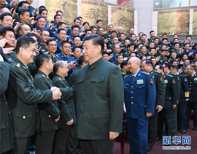 11月27日上午,全軍院校長集訓(xùn)在國防大學(xué)開班。中共中央總書記、國家主席、中央軍委主席習(xí)近平出席開班式并發(fā)表重要講話,代表黨中央和中央軍委,向全軍院校長和軍事教育戰(zhàn)線的同志們致以誠摯問候。這是習(xí)近平親切接見集訓(xùn)班全體學(xué)員。 新華社記者 李剛 攝