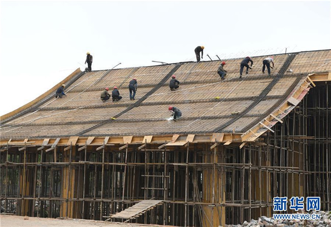 11月28日,工人們在大糯黑村的劇院建設現(xiàn)場工作。新華社記者周華攝