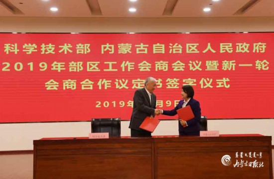 會(huì)上,王志剛、布小林代表雙方簽署工作會(huì)商制度議定書(shū)(2019—2024年)。雙方?jīng)Q定建立新一輪會(huì)商機(jī)制,成立部區(qū)合作委員會(huì),在構(gòu)建經(jīng)濟(jì)高質(zhì)量發(fā)展的產(chǎn)業(yè)創(chuàng)新體系、推動(dòng)呼包鄂創(chuàng)建國(guó)家自主創(chuàng)新示范區(qū)、提升以原始創(chuàng)新和產(chǎn)業(yè)技術(shù)創(chuàng)新為重點(diǎn)的科技支撐能力、探索生態(tài)文明建設(shè)新路子、建立“科技興蒙”新機(jī)制等方面加強(qiáng)會(huì)商,加快推動(dòng)創(chuàng)新型內(nèi)蒙古建設(shè)。
