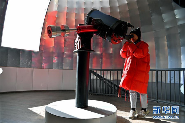 12月14日,參觀者在藏域星球天文科普體驗館體驗天文望遠鏡觀測。當(dāng)日,藏域星球天文科普體驗館在西藏拉薩開館試運營,這是西藏第一家天文科普體驗館。據(jù)介紹,此館以感知宇宙、認知宇宙、探索宇宙為主題,以參觀者的第一感官體驗為設(shè)計導(dǎo)向,利用互動投影、懸浮投影、物體跟蹤、人體捕捉、體感互動、VR等高科技手段展示藏地的神秘,揭示宇宙的奧秘。新華社記者李鑫攝