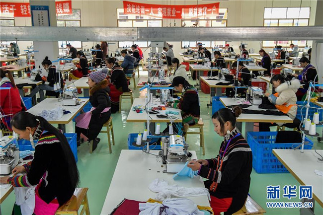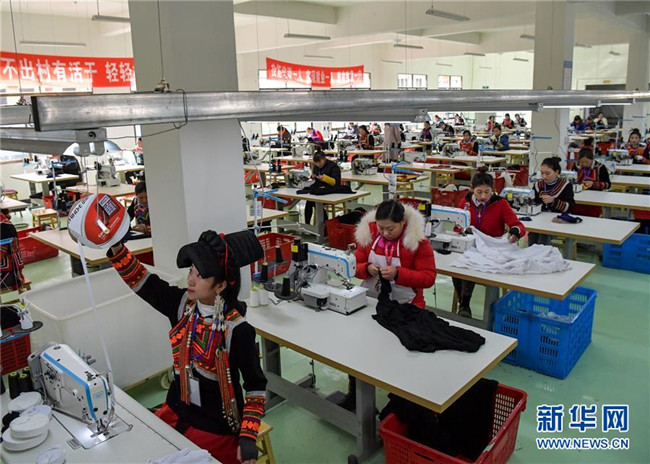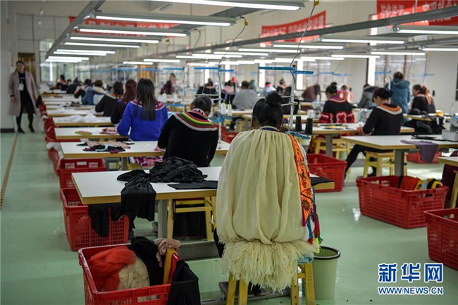 12月19日,工人在扶貧制衣車(chē)間工作。新華社記者 張超群 攝
