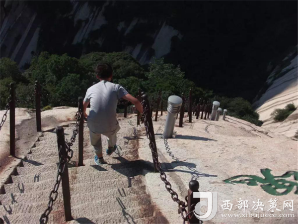 千百年前,陡峭如削的華山,艱險(xiǎn)異常,難以登攀,只能望山興嘆、遠(yuǎn)而望之。后來(lái)人們循猿徑,依山就勢(shì),巧妙地利用天設(shè)地造的石隙嶺脊,開(kāi)鑿出了登山道路,始有天下奇觀“自古華山一條路”。