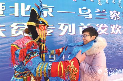 來自首都北京等地、乘坐首列北京——烏蘭察布高鐵冰雪旅游扶貧專列的150多名游客和“發(fā)現(xiàn)最美鐵路·探訪百年京綏”活動暨烏蘭察布青年“邂逅高鐵時代”心動之旅活動團隊在儀式現(xiàn)場受到熱情歡迎。