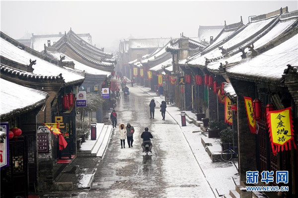 當(dāng)日,山西省平遙縣迎來(lái)降雪,雪中的平遙古城銀裝素裹,美景如畫(huà)。平遙古城是目前中國(guó)保存最完整的古代縣級(jí)城池之一,1997年被列入世界文化遺產(chǎn)名錄。新華社記者詹彥攝