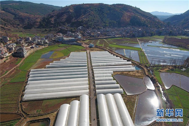 這是1月9日拍攝的云南省富民縣散旦鎮(zhèn)漢營(yíng)村草莓種植基地(無人機(jī)照片)。新華社記者楊宗友攝