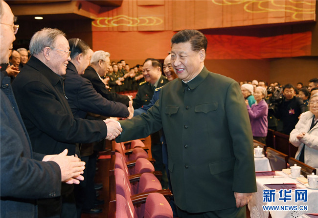下午4時許,習(xí)近平來到老同志中間,全場響起熱烈掌聲。習(xí)近平同大家親切握手,關(guān)切詢問他們的身體和生活情況,共同回顧過去一年黨、國家、軍隊事業(yè)取得的重大成就。老同志們一致表示,要更加緊密地團結(jié)在以習(xí)近平同志為核心的黨中央周圍,以習(xí)近平新時代中國特色社會主義思想為指導(dǎo),貫徹習(xí)近平強軍思想,貫徹新時代軍事戰(zhàn)略方針,堅持政治建軍、改革強軍、科技強軍、人才強軍、依法治軍,不忘初心、牢記使命,銳意進取、開拓創(chuàng)新,為實現(xiàn)國防和軍隊建設(shè)2020年目標(biāo)任務(wù),為奪取全面建成小康社會偉大勝利作出新的貢獻。