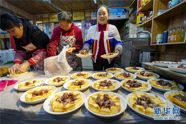 1月18日,中山古鎮(zhèn)的一戶商家在“千米長宴”開席前準備菜品。當(dāng)日中午,伴隨著一聲“開席嘍”,一年一度的“千米長宴”在重慶市江津區(qū)中山古鎮(zhèn)舉行。噴香的煙熏豆腐、軟糯的夾燒肉、可口的石板糍粑……800余桌年味十足的特色美食,吸引了兩萬多名游客前來體驗傳統(tǒng)民俗,感受“一雙筷子吃遍一條街”的暢快淋漓。中山古鎮(zhèn)自古就有“千米匯長宴萬人祈福祉”的習(xí)俗。每年春節(jié)期間,古鎮(zhèn)老街居民都會在千米長街上大擺“百家宴”,祝福生意興隆、家業(yè)興旺、風(fēng)調(diào)雨順、五谷豐登。新華社記者劉潺攝