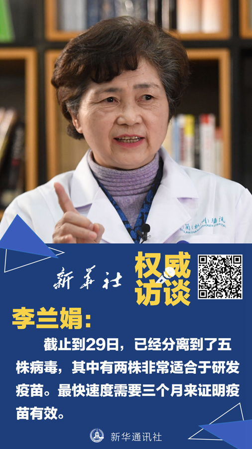 李蘭娟:研發(fā)疫苗第一步是要獲得病毒株。目前,我們已經(jīng)分離到了五株病毒,其中有兩株非常適合于研發(fā)疫苗。分離到種子株之后,還要把種子株的病毒在細(xì)胞中培養(yǎng),讓它長到一定的量,這就需要一個多月。大量的細(xì)胞病毒拿到了,還要進(jìn)行滅活,并對它的免疫原性如何,能不能預(yù)防、有沒有效果、有沒有毒力、會不會造成新的感染等開展實(shí)驗(yàn)。