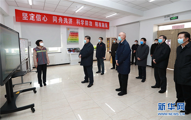 2月10日,中共中央總書記、國(guó)家主席、中央軍委主席習(xí)近平在北京調(diào)研指導(dǎo)新冠肺炎疫情防控工作。這是習(xí)近平在朝陽(yáng)區(qū)安貞街道安華里社區(qū),了解基層一線疫情聯(lián)防聯(lián)控情況。 新華社記者 龐興雷 攝