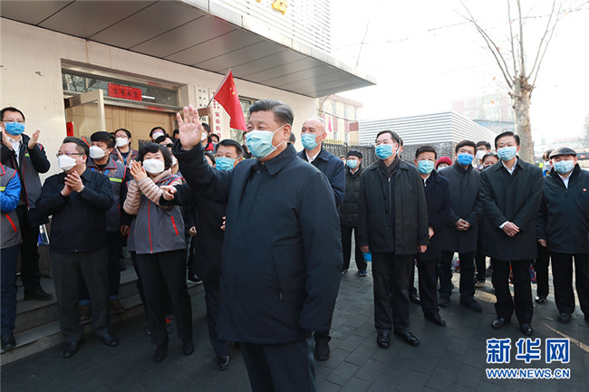 2月10日,中共中央總書記、國(guó)家主席、中央軍委主席習(xí)近平在北京調(diào)研指導(dǎo)新冠肺炎疫情防控工作。這是習(xí)近平來(lái)到朝陽(yáng)區(qū)安貞街道安華里社區(qū),了解基層一線疫情聯(lián)防聯(lián)控情況。 新華社記者 鞠鵬 攝